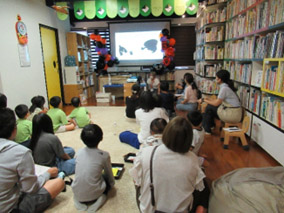 10月19日(日)、絵本と図鑑の親子ライブラリービブリオキッズ(以下、「ビブリオキッズ」)(福岡市南区)にて、九州産業大学造形短期大学部の学生と図書館が連携し、「図鑑の日」記念イベント「図鑑であそぼうさい祭」のワークショップに参加しました。