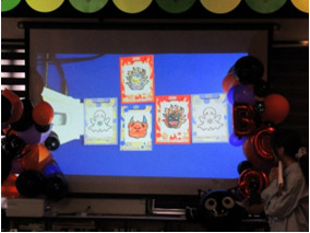 日本で最初の書籍名称として「図鑑」を用いた「植物図鑑」の初版が出版されたのが10月22日、この日を記念してビブリオキッズが「図鑑の日」に制定しました。ビブリオキッズの司書から「防災」について学び、そのあと学生によるワークショップが行われました。ワークショップでは、災害(台風や洪水など)を「モンスター」に見立てて、モンスターカードとモンスター図鑑を作り、遊びを通じて災害から身を守る方法を学びました。また、アルミシートが防寒対策に役立つことを、参加した子どもたちは学びました。