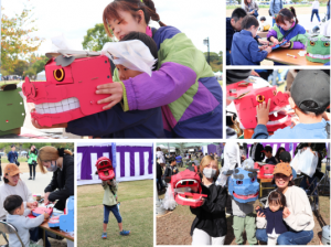 「獅子フェス福岡(福岡城内三ノ丸広場)」の会場では、隣の本ステージで舞う迫力ある獅子舞の囃子の音に合わせて、イベントに参加した子どもたちが完成したマイ獅子頭を元気いっぱいに振る姿が見られ、伝統とモノづくりが融合した光景となりました。
