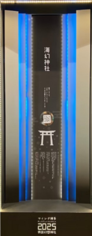 「海幻神社」は、博多駅に出現した架空の神社という設定で、ディスプレイ中央の二次元バーコードを読み取るとおみくじが引ける体験型のディスプレイです。海のようにすべてを繋ぐ「水」をモチーフにし、過去と未来、神社、そして人々の想いが繋がる様子を表現しています。