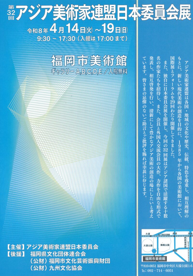 福岡市美術館 ギャラリーA~Eにて「第32回アジア美術家連盟日本委員会展」が開催されます。